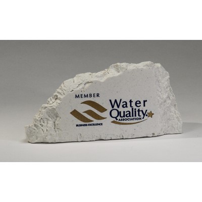 Elevate your brand with our custom rocks featuring your company logo, product launch, or corporate vision. The upright imprint area guarantees your message will stand out. Crafted in the USA with recycled materials, our rocks are both eco-friendly and visually striking. 7" W x 3.5" H x 2.75" D