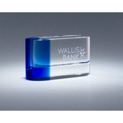 When it comes to good design, this card holder means business! A striking combinations of clear and blue optic crystal, this designer desk accessory is the perfect compliment to our Variations Paperweight and Variations Clock. 2" H x 3.5" W x 1.5" D